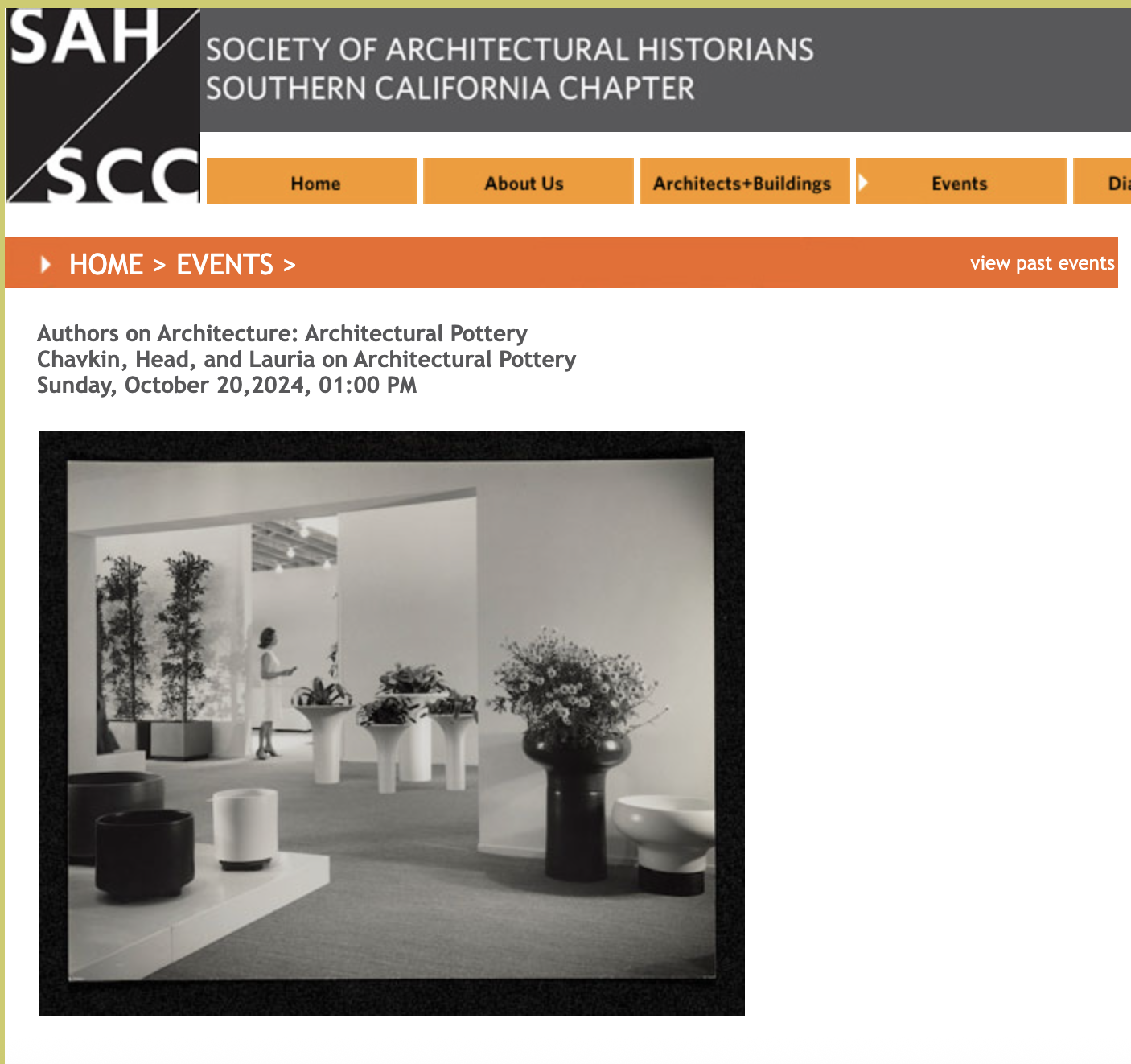 Society of Architectural Historians: Southern California Chapter hosted “Authors on Architecture: Architectural Pottery” with Daniel Chavkin, Jeffrey Head, & Jo Lauria, co-authors of Architectural Pottery: Ceramics for a Modern Landscape, October 20, 2024.
